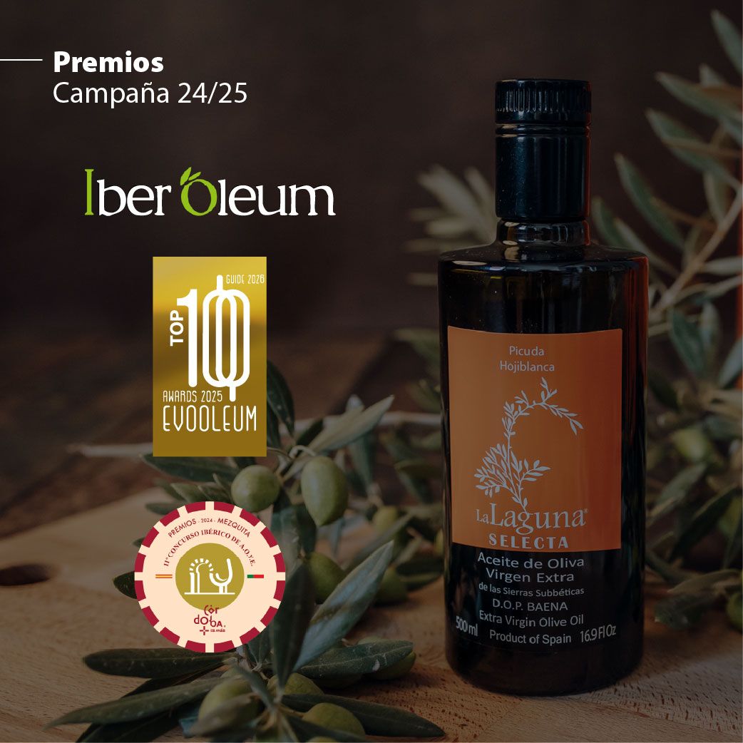 La Laguna SELECTA es un aceite de Aceite de Oliva Virgen Extra con las certificación de calidad del Consejo Regulador de la denominación de Origen de Baena, que ofrece un “bouquet” excepcional de aceite, mezcla de diferentes variedades de olivo autóctonas de la zona. Proveniente de diferentes pagos, siempre se asegura la recogida de la aceituna en su momento idóneo de maduración.